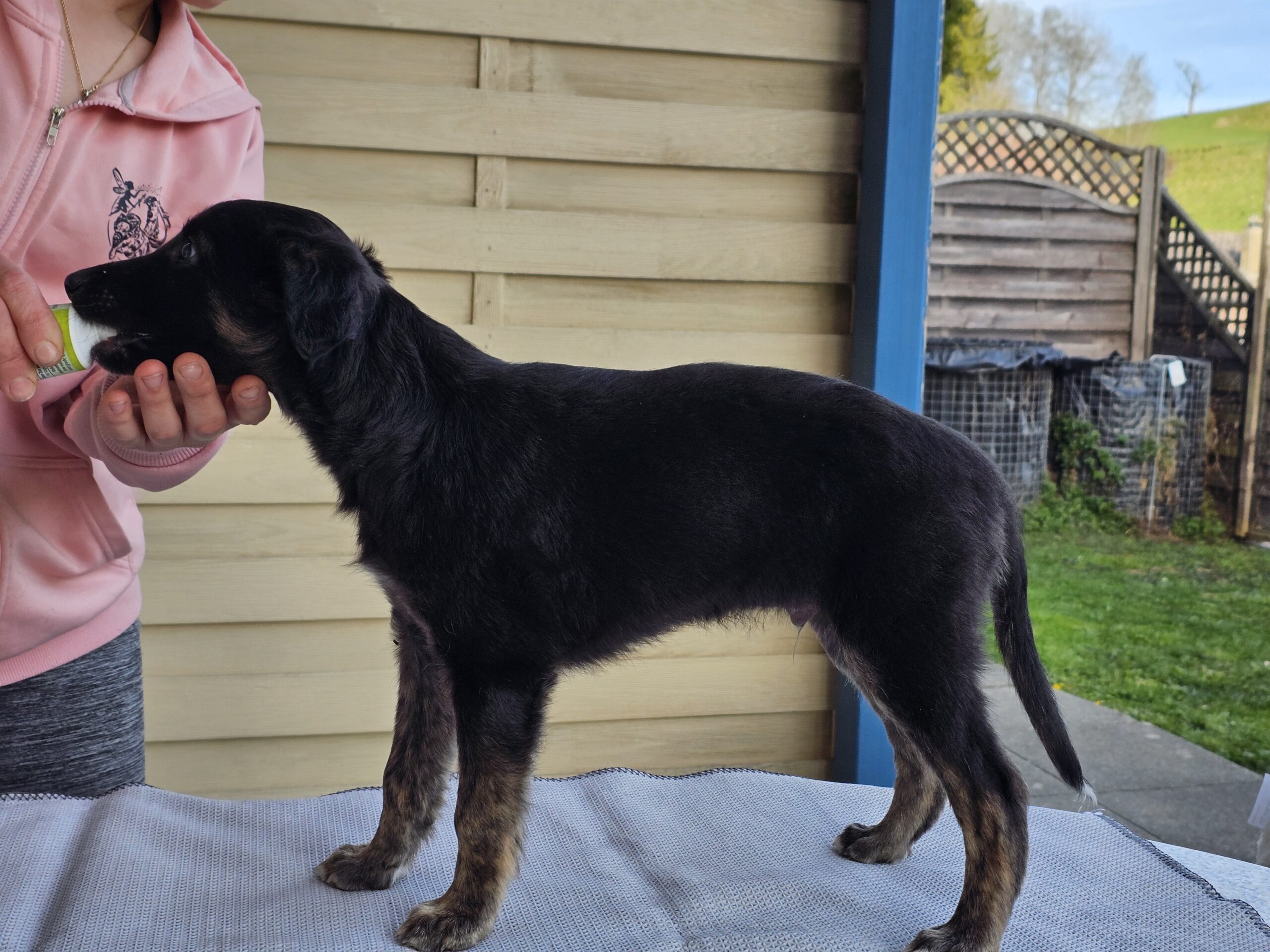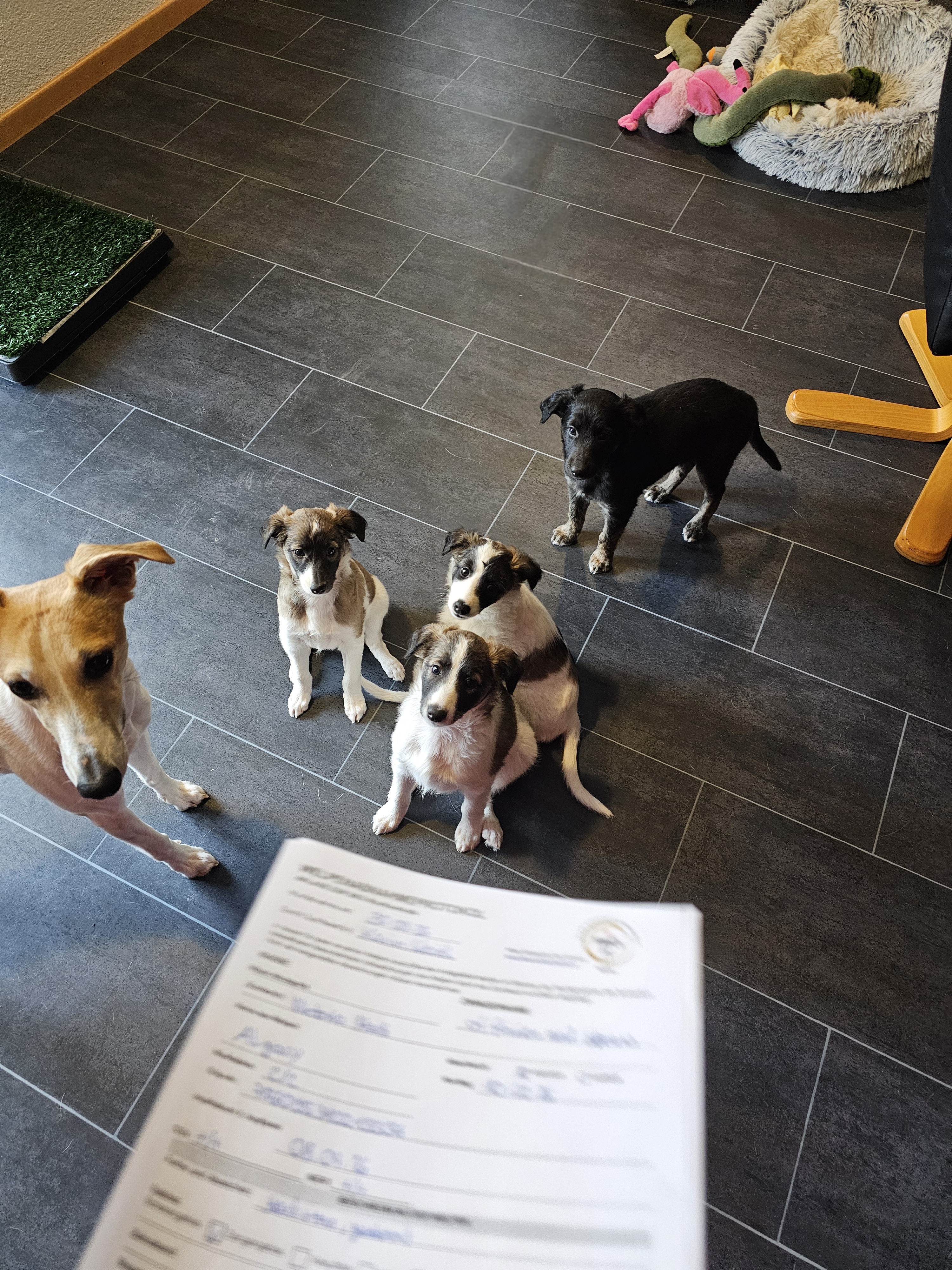 In der achten Woche mussten die Zwerge nochmals zum Tierarzt, die erste Impfung stand an. Dieses Mal haben sie den Piecks gar nicht gespürt. Dank leckerem „Schläbberli“ waren sie abgelenkt.